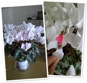 頂き物で、白いシクラメン。
